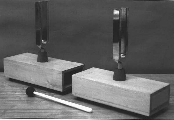 Рис. 4.35. Камертоны на резонирующих ящиках с молоточком