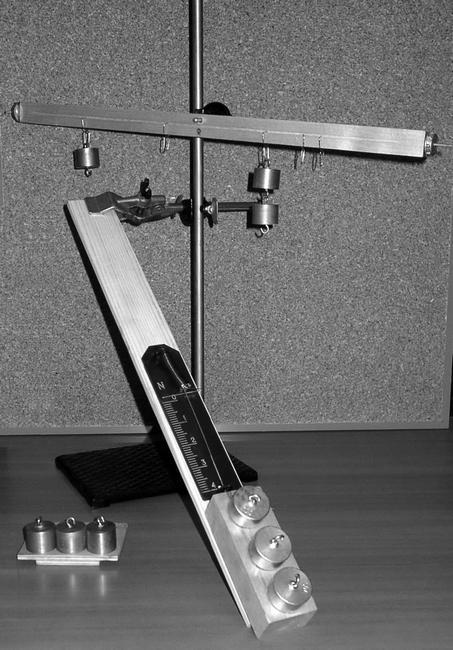 Рис. 4.37. Простые механизмы (рычаг, наклонная плоскость, блок) и трибометр