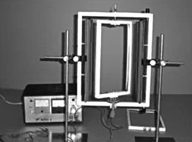 Рис. 4.60. Прибор для демонстрации вращения рамки с током в магнитном поле