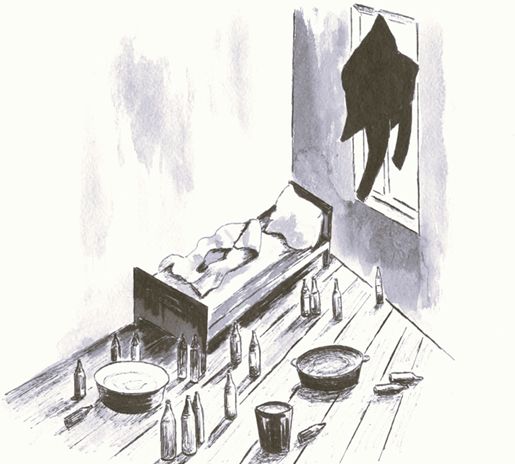 Итак, мы подошли к двери моего будущего жилища и постучали. Тишина. Еще раз постучали. Тот же эффект. Вышнепольский недолго думая достал имеющиеся у него ключи от комнаты и открыл ее. Взору предстало жилище около десяти квадратных метров с давно не беленными стенами и потолком. Узкое окно было наискосок завешено черным халатом, грязные рукава которого безжизненно свешивались, а полы кокетливо были распахнуты во все стороны. Слева от окна стояла кровать с неубранной постелью, справа – большущий старый шкаф, на одну треть закрывавший окно. На полу разместились четыре разноцветных таза, наполненные водой с плавающим бельем, а также множество пустых бутылок из-под пива. При попытке зайти в комнату Вышнепольский задел одну из них ногой. Бутылка проворно покатилась и звонко ударилась о свою приятельницу, которая как‐то недовольно от нее отстранилась, уткнувшись горлышком в ножку кровати.