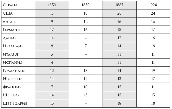 В США соотношение получивших высшее образование к выпускникам средней школы составляло для 1900–1909 гг. – 27 %, в 1910–1919 гг. – 18 %, 1920–1929 гг. – 17 %, 1930–1939 гг. – 15 %, 1940–1949 гг. – 17 %, 1950–1959 гг. – 25 %. В конце 60-х – начале 70-х гг. в вузы поступало около 50 % выпускников школы (в 1955 г. – 45,9 %, 1960 г. – 49,6 %, 1965 г. – 54,6 %, в 1966 г. – 53 %).77 К 1970 г. ежегодная доля поступающих в вузы в соответствующей возрастной когорте составила в Австралии 23,5 %, Австрии 16 %, Бельгии 28,5 %, Канаде 33,6 %, Дании 26 %, Финляндии 18,3 %, Франции 22,4 %, Германии 15,8 %, Италии 24,1 %, Япония 23,8 %, Нидерландах 18,3 %, Норвегии 27,5 %, Португалии 6,6 %, Испании 18,1 %, Швеции 37,6 %, Турции 5,1 %, Англия 20,6 %, США 46,5 %, Югославии 29,1 %78.