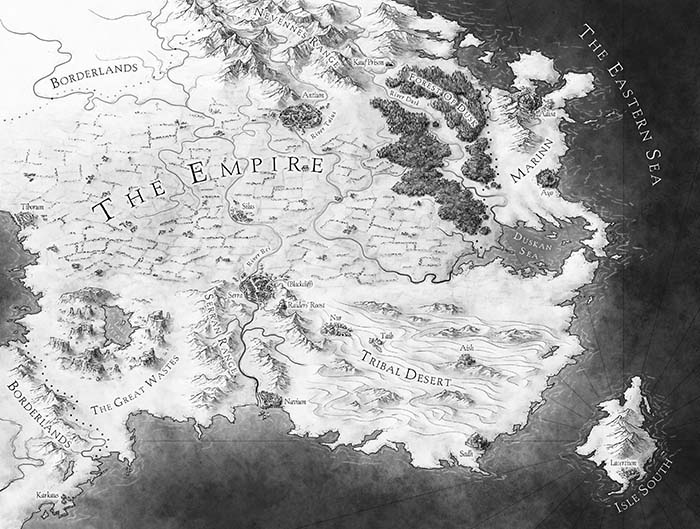 The last word leaves my lips as the soldiers who were following us come into view from the tunnel to our left. Five yards away. Four. In my mind, the knives have already flown, already found their marks. I burst from the alcove and let them loose. The first four legionnaires go down quietly, one after the other, as easy as scything grain. The fifth drops with a sweep of my scim. Warm blood sprays, and I feel my bile rising. Don’t think. Don’t dwell. Just clear the way.