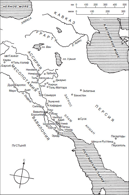 Мир Древнего Востока включает в себя (с запада на восток) Египет, Палестину, Сирию, Аравию, Анатолию, Месопотамию и Иран. Если рассматривать этот регион в целом, то сердцем его окажется Аравийская пустыня – пространство бесплодных песков. Вокруг нее громадной дугой простирается «плодородный полумесяц», который образуют речные долины Египта и Месопотамии и сирийско-палестинское связующее звено. Этот полумесяц включает в себя самые плодородные земли на всем Ближнем Востоке. Вокруг него к северу и востоку лежат плоскогорья Анатолии и Ирана, более бедные в сельскохозяйственном отношении, но обладающие значительными природными ресурсами – запасами леса, камня и металлов.