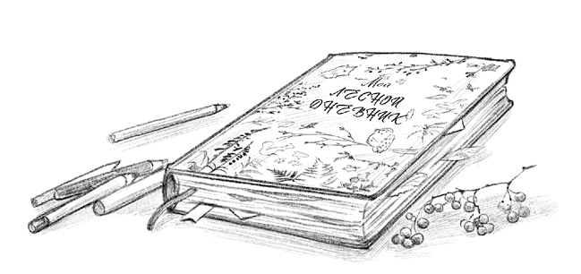 Дома Ива достала из холодильника молоко и уселась за кухонный стол. Положив перед собой лесной дневник, она принялась медленно листать его. На первых страницах был изображён план её леса. Потом шли страницы с вклеенными или нарисованными перьями, сухими цветами и листьями. Ива пыталась зарисовать и животных. Она нежно погладила изображение Руфуса. Потом Ива взяла карандаш и нарисовала по памяти несколько деревьев. Как только она закончила, на пороге комнаты появился папа.