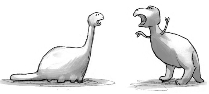 – Я бронтозавр Рекс, и я проглочу тебя с кожей и волосами! Нет, о нет, ты этого не сделаешь, потому что сюда прилетит Супермен, герой всех героев, и спасёт меня! – За этим последовали звуки полёта. – Вжуууух. – А потом раздались выстрелы. – Пиу, пиу, пиу – тратата, тратата, тратата – бабах, бабах!
