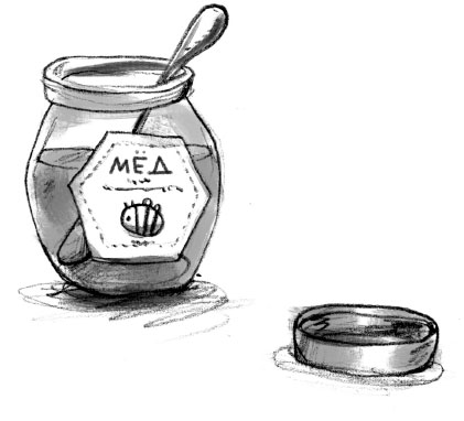 Потом фрау Мёд уложила раненую пчелу в крошечную коробочку. Она сделала там отверстия для воздуха и капнула внутрь цветочный нектар из пипетки, чтобы пчела смогла вдоволь наесться.