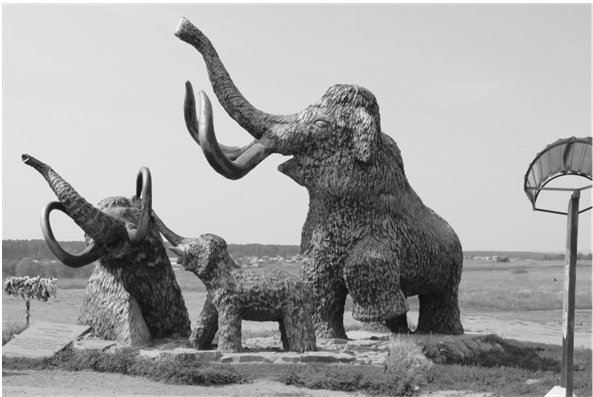 Скульптурная композиция «Мамонты» на месте Мальтинской стоянки первобытного человека эпохи палеолита. Фото автора