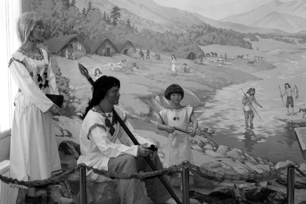 Поселок эпохи поздней бронзы на берегу одного из рукавов реки Катунь на Алтае. Реконструкция создана на основе результатов раскопок поселения Майма-XII, относящегося к ирменской археологической культуре позднего бронзового века, IX–VIII вв. до н. э. Национальный музей им. А. В. Анохина, г. Горно-Алтайск. Фото автора