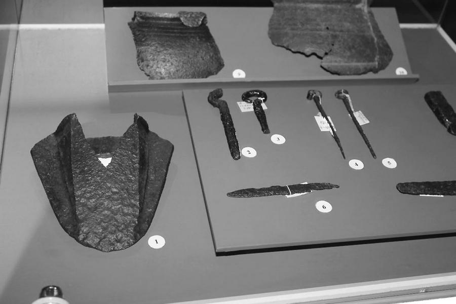 Культура хуннов. III в. до н. э. – I в. н. э. (археологические раскопки у с. Дурены Республики Бурятия). Из экспозиции Музея истории Бурятии им. М.Н. Хангалова. 1). Сошник. Железо (с. Дурены, А.В. Давыдова, 1979). 4–5). Шилья. Железо (с. Дурены, А.В. Давыдова, 1979). 6). Нож. Железо (с. Нижние Дурены, А.В. Давыдова, 1979). Фото автора