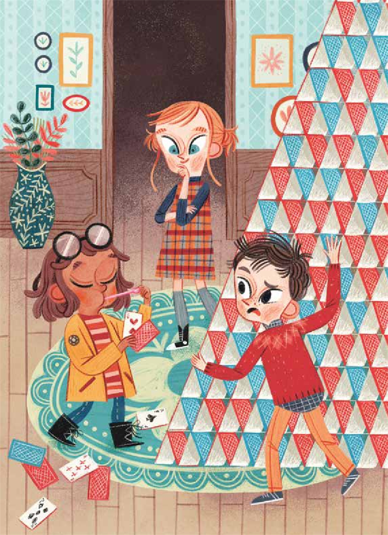 Марина с Лукасом собирались побить мировой рекорд по строительству карточных домиков. Они играли в гостиной бабушки с дедушкой, и им оставалось добавить всего несколько этажей, чтобы их домик стал самым высоким в истории.