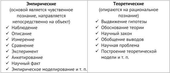 Формы познания и методы познания находятся в тесной взаимосвязи между собой, так же как формы рационального и чувственного познания, теоретические и эмпирические методы, однако данные понятия не являются тождественными. Форма познания отражает организованное взаимодействие субъекта и объекта познания, а метод познания представляет собой совокупность правил и приемов освоения действительности.