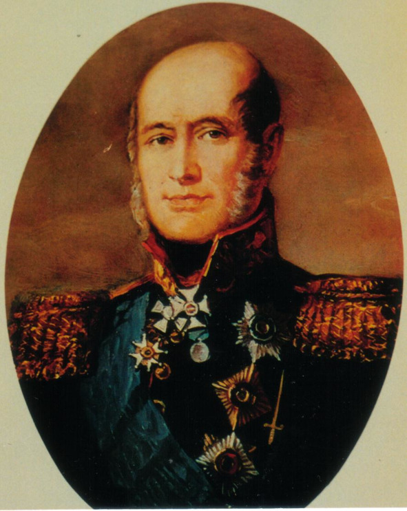 Барклай-де-Толли Михаил Богданович (1761—1818). Выдающийся русский полководец. С января 1810 по сентябрь 1812 года – военный министр России. В 1812 году – генерал от инфантерии. Ему принадлежит большая заслуга в сохранении русских войск в первый, самый тяжёлый период войны. Командовал 1-й Западной армией. Умело руководя её вынужденным отходом от границы России, Барклай-де-Толли 20 июля (1 августа) привёл армию к Смоленску. 17 (29) августа передал общее командование М. И. Кутузову.