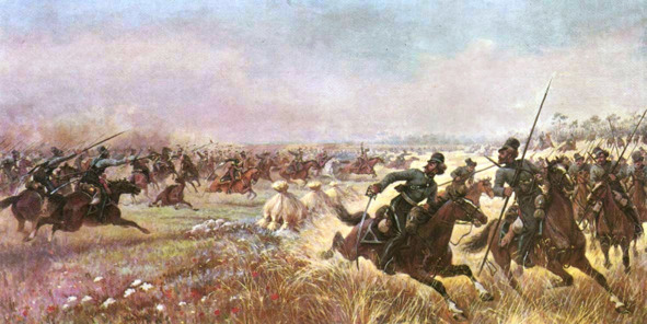 Дело казаков Платова под Миром. Художник В. Мазуровский. 1912 г.