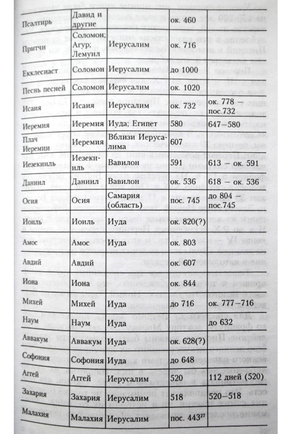 Церковь держится следующих дат написания книг Ветхого Завета (книг Еврейских Писаний) 27: