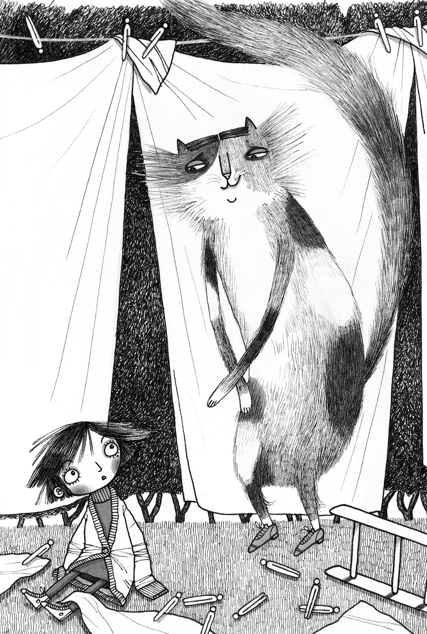 Девочка знала, что слезами горю не поможешь – никто не придёт ей на выручку. Хорошо, что она отделалась лёгкими ушибами. Осматривая ссадины на колене и локте, Эмили услышала шорох со стороны ограды. Она подняла голову и увидела невероятно большого кота с длинной пёстрой шерстью, который протискивался сквозь зелень. И что самое странное – он стоял на задних лапах.