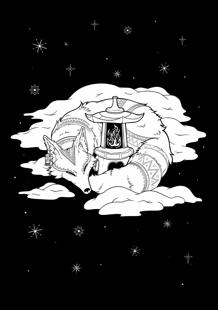 Уже темнело. Я совсем выдохлась и решила сделать остановку. Положила кожаную сумку у самого высокого дерева с тёмно-зелёными листьями и пошла собирать сухие ветки для скромного костра. Набрала мутной воды из узенькой речушки в небольшую металлическую кастрюльку, чтобы прокипятить. Сняла свою мятую одежду и постелила её на землю. В этой местности уже не так много снега. Кругом прорастает молодая трава и необычные розовые цветы. Согревая свой мех у разведённого костра, я улеглась и стала смотреть в бесконечно глубокое небо, вглядываясь в едва знакомые звёздные узоры, коих не видно в городах. Кажется, вот созвездие Фенрира. Это один из старых богов наших предков. В книгах его описывают как волка, который внушал страх своим врагам. Его шерсть была такого глубокого чёрного цвета, что поглощала весь свет вокруг него. Мех Фенрира обладал необычайно сильной устойчивостью к огню: отказывался воспламеняться или тлеть, даже когда встречался с жадными языками пламени. Через туманные глаза волк мог разглядеть свою добычу даже в кромешной тьме посреди ночных скал. Само зрение божества тоже отличалось от нашего – вместо привычных нам тел и объектов, оно видело лишь кровеносные сосуды, подмечая самые уязвимые места своей будущей цели. Для него плоть – лишь завеса, скрывающая алую жидкость. Разорвать артерии и вены – его стремление. Фенрир – настоящее воплощение первобытной мощи и неодолимой силы. Два массивных клинка, торчащие из его челюсти, были способны прокусить даже самую прочную броню и раздробить кости одной сокрушительной атакой. Поговаривают, что Фенрир потерял один клык то ли от пропущенного удара в поединке с ещё более могущественным созданием, то ли от неизбежной даже для него старости. Клык тот, судя по написанному в книгах, обладал чрезвычайно ценными свойствами. Материал доисторических клыков был неизвестным никому металлом невиданной прочности. Оружие из такого материала никогда не тупится и никогда не ломается, остаётся вечно острым и смертоносным. Мои глаза уже закрывались, а созвездие на небе растворялось, как рябь на чёрной воде.