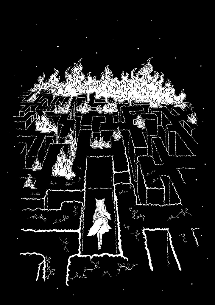 Я шла из леса быстрым шагом по замёрзшим тропинкам, чтобы рассказать матери о розовом пламени. Сквозь мягкие иголки на северных деревьях просачивались огни вечернего города. В сумерках уже начинали виднеться первые звёзды. Ветер стихал. И словно из-под земли, пробуждаясь от вечного сна, выходил ночной холод. По пути я меняла облик: мои уши уменьшались, лицо принимало человеческие черты, а хвост становился всё короче и короче до тех пор, пока совсем не пропал. Вскоре я вышла на основную тропу, ведущую к городу. Из-за деревьев показались противные красные флаги, придающие Ангамаду негативный окрас.