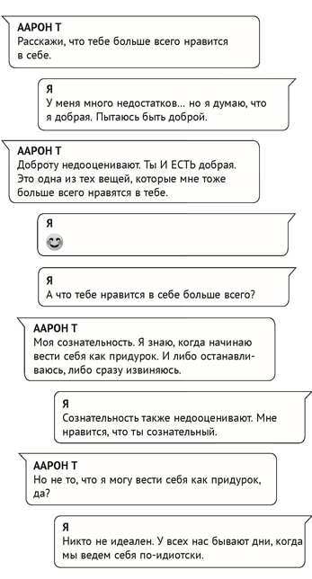 С Аароном мы общались четыре недели, но казалось, что намного дольше. Мы встретились в Сети, на сайте знакомств, а когда поняли, что у нас много общего (жажда путешествий, одержимость готовкой и передачами про ремонт, оба по-настоящему ценим Шекспира, любим тихие вечера дома и редкие шумные выходы в свет…), то перешли на следующий уровень и стали отправлять друг другу сообщения в мессенджер.