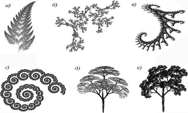 А математическая всеобщность сложных систем – это, в свою очередь, следствие Всеобщности всех физических процессов окружающего мира, описываемых фрактальными[35] структурами – динамическими объектами[36] дробной размерности, одним из главных свойств которых является свойство самоподобия. С помощью фрактальной геометрии могут быть построены различные образы (см рис. а - е) и описаны многие физические процессы. Но самое главное то, что основой любого физического (динамического) процесса является энергия. Поэтому и напрашивается важный вывод, что фрактал – это своеобразная математическая модель поведения энергии, модель, в которой должна быть заложена взаимосвязь всех фундаментальных физических и математических постоянных с образами объектов нашего мироздания. И в том, что данная взаимосвязь будет определять способность энергии к трансформации (изменению качества состояния) и содержать в себе Всеобщность всех физических процессов, нет никаких сомнений.