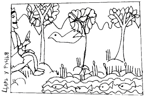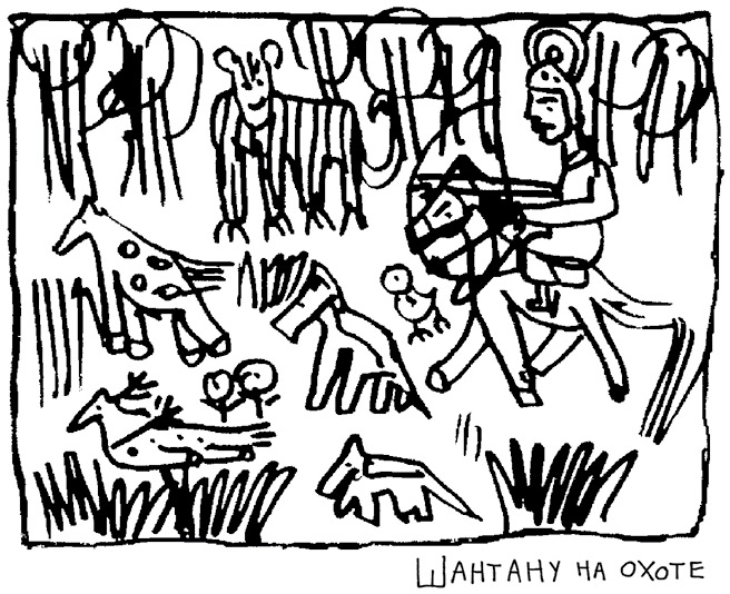 Однажды на охоте царь отстал от спутников. Он утомился и очень хотел пить – и вдруг набрел на ручей. Немного отдохнув, царь, не зная, как вернуться во дворец, исторг из себя семя и поместил его на древесный листок. Затем призвал воробья и велел ему отнести листок царице.