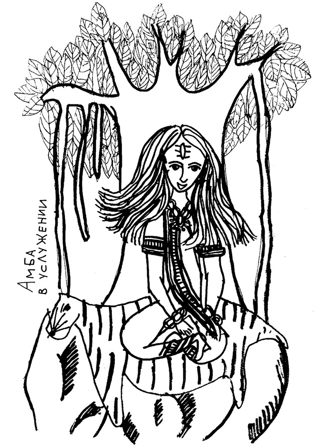 И вот чаша скорби у Амбы переполнилась. Она возненавидела весь белый свет – и особенно Бхишму. Стала она отшельницей в услужении у Владыки Шивы и получила чудесную способность сделаться для Бхишмы причиной смерти.