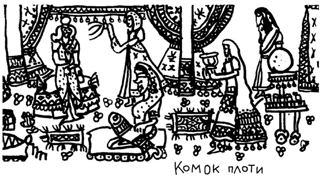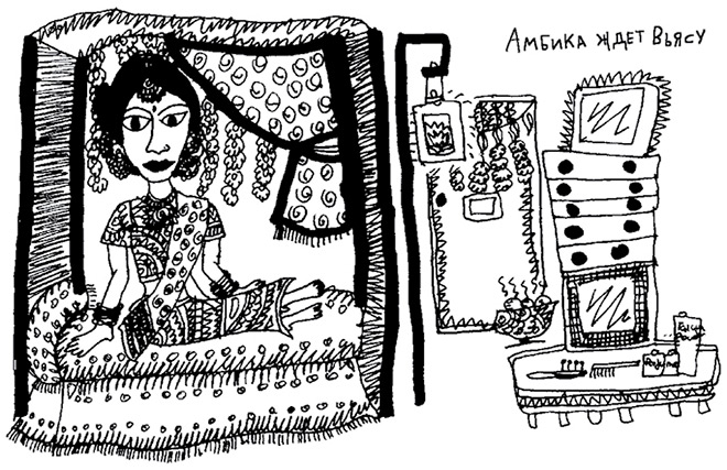 Поэтому она велела Амбалике еще раз украсить себя драгоценностями и ждать в опочивальне. Амбалика притворилась, будто слушается. Сама же нарядила служанку, чтобы походила на Амбалику. Служанка смирно ждала Вьясу. Вьясе это понравилось, и он сказал: