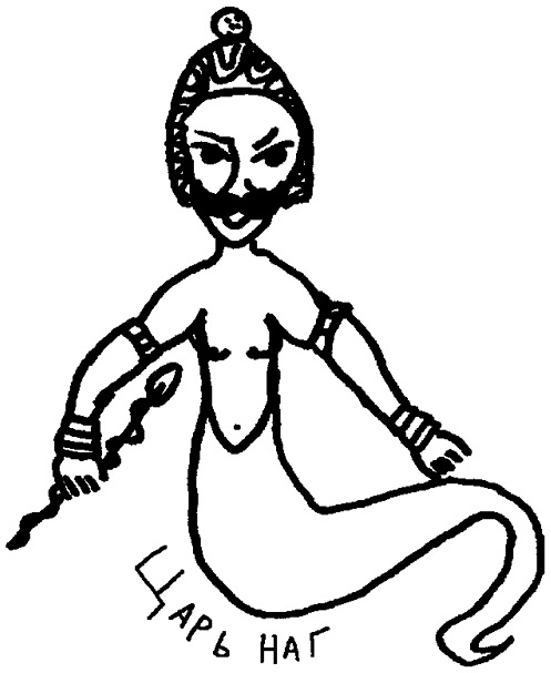 Дурьйодхана опутал его веревками и бросил в Гангу. Бхима опустился глубоко в реку и попал в царство наг[21]. Наги покусали его, и их яд вытеснил ту отраву, которую Бхима употребил вместе с пищей. Тут Бхима принялся убивать наг. Кое-кто сумел убежать, и они сообщили своему царю, что откуда-то попал к ним юноша-силач. Царь и его придворные поспешили туда, где находился Бхима. Среди придворных был отец Кунти, и, завидев Бхиму, он воскликнул: