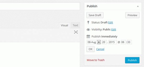 Как только вы закончите с данными опциями, перейдите в самый верх страницы – там по правому краю вы увидите поле «Publish». Чтобы сразу же опубликовать запись на сайте, просто щелкните по кнопке «Publish». Запись тут же появится на сайте. Перед тем как сделать это, давайте познакомимся поближе с еще одним прекрасным механизмом WordPress, который называется планированием публикаций. Щелкните по кнопке Edit рядом с текстом «Publish immediately», и вы увидите календарь, где вы можете установить нужную дату и время публикации записи. Если вы зададите дату публикации и щелкнете Ok, кнопка Publish будет заменена на Shedule, щелчок по которой приведет к планированию вашей записи. Это очень удобная возможность, если вы добавляете массу записей и хотите, чтобы они равномерно публиковались на сайте.