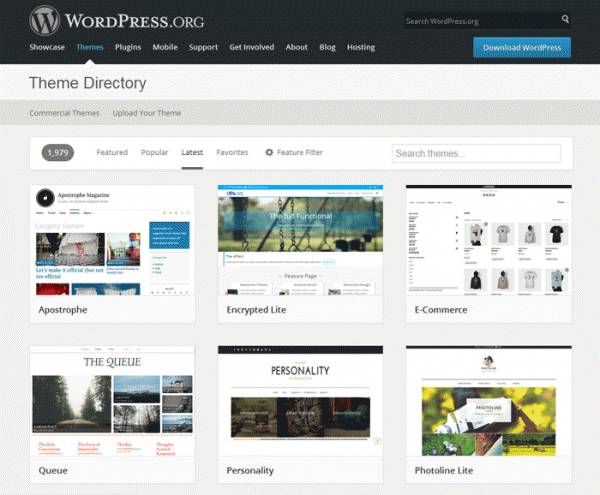 Самое лучшее место поиска бесплатных WordPress-тем – это официальный каталог. Здесь расположено свыше 2000 тем, которые являются полностью бесплатными. Вы можете всегда скачать их и использовать в любых целях. Причина, по которой это место является лучшим источником тем, состоит в том, что каждая тема, представленная в каталоге, проходит жесткий процесс отбора и тестирования на предмет соответствия стандартам WordPress. Все они поддерживают весь функционал ядра WordPress и, что более важно, являются безопасными для использования на вашем сайте.