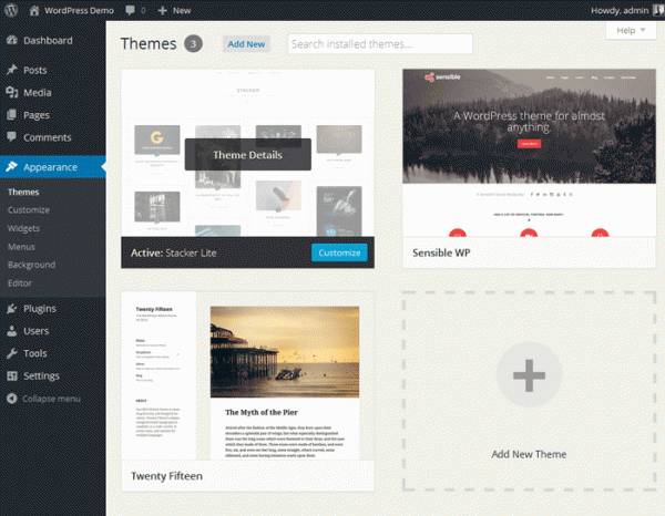 Вы можете добавлять столько тем, сколько вам требуется. Посетите раздел «Themes» – там будут перечислены все ваши загруженные темы. Здесь вы можете активировать любую из тем или посмотреть информацию о ней.