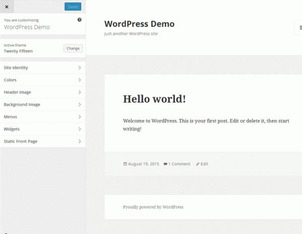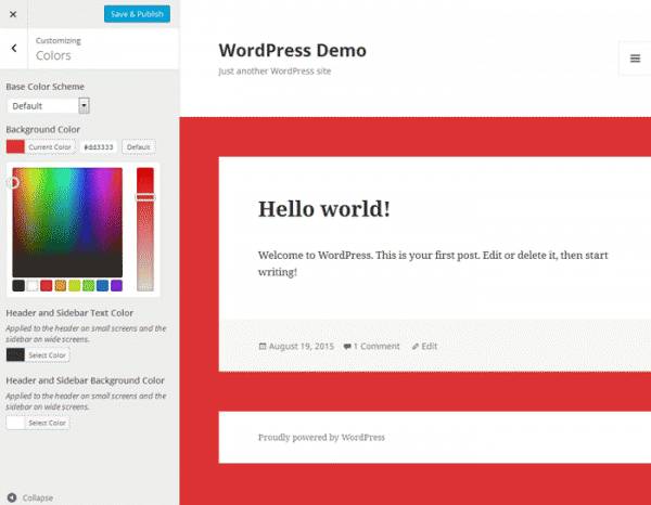 WordPress имеет встроенную возможность внесения правок в вашу тему, которая носит название «кастомайзер». Здесь вы можете изменять такие элементы, как цвета, фоновые изображения, загружать логотип и т.д. Каждая тема имеет разный набор доступных опций, некоторые коммерческие темы могут вообще не использовать кастомайзер и предлагать свои собственные панели опций. Все темы, перечисленные в официальном каталоге WordPress, используют кастомайзер; правила каталога не позволяют использовать произвольные панели опций. Это сделано с той целью, чтобы унифицировать опыт взаимодействия для всех тем.