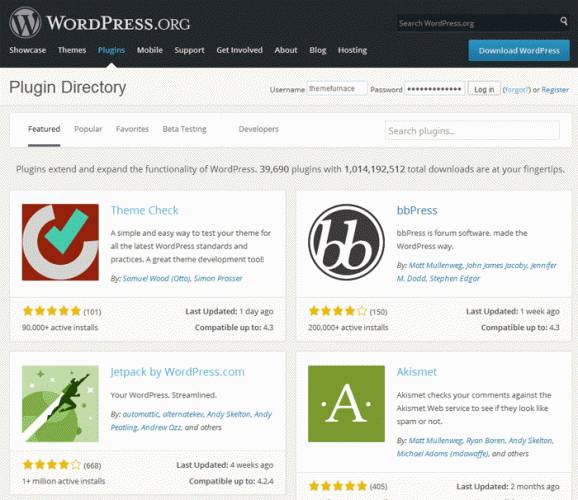 Опять же, каталог WordPress является лучшим местом для поиска бесплатных плагинов. В данный момент каталог насчитывает свыше 40000 разных плагинов, которые несут в себе самую разную функциональность. Сайт имеет удобный поиск – вы можете вводить ключевые слова, которые будут отражать то, что вам требуется.