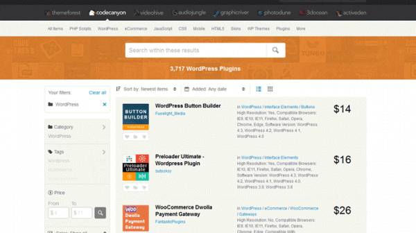 Крупный рынок премиум-плагинов – CodeCanyon. Созданный той же компанией, что и ThemeForest, этот рынок в данный момент насчитывает свыше 3,700 плагинов WordPress в разных категориях. Как уже было отмечено ранее, обязательно изучите описание, посмотрите демо-вариант и прочтите отзывы покупателей перед тем, как совершать покупку.
