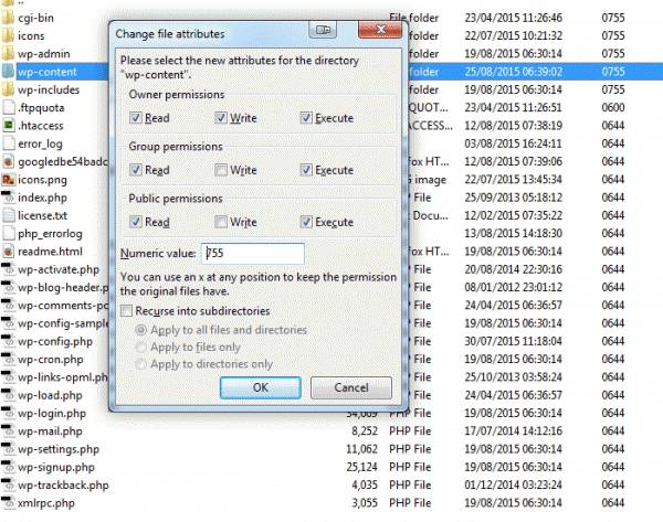 Также вы можете установить корректные права доступа к файлам, используя вашу FTP-программу. Они должны быть следующими:
