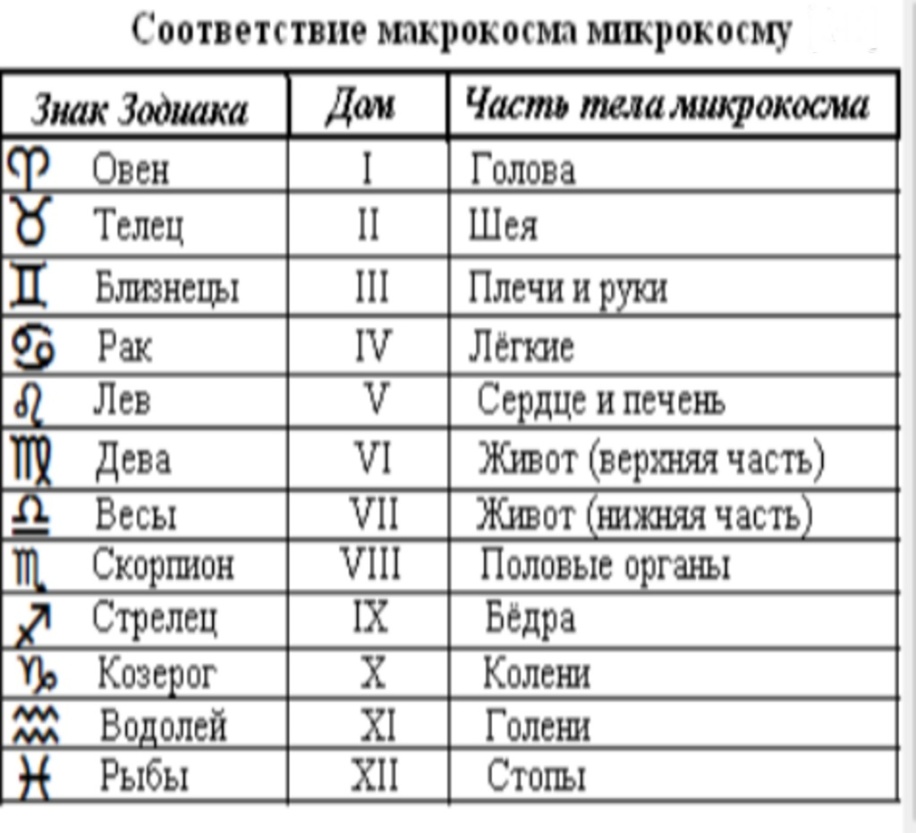 Органы и части тела человека зависят от того, к какой стихии и к какому кресту относится его знак зодиака.