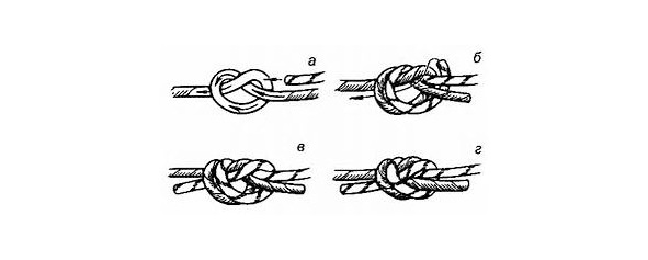 ствии беседки (обвязки), для крепления петли узла на две отдельные точки станции. Легко развязывается после приложенной нагрузки. При использовании в середине верёвки – контрольный узел не нужен.
