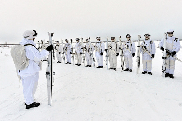 Снаряжение для снега, как правило, состоит из ледоруба, лыжных палок, солнцезащитных очков, соответствующей обуви и приспособлений (снегоступы, лыжи, кошки), белого маскировочного костюма (фото 57).