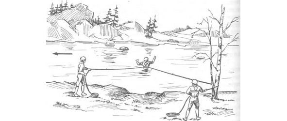 Рисунок 46. Переправа вброд со страховкой «два уса в спину».