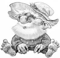 Клубок шерсти на глазах превратился в маленького, сгорбленного, слегка долговязого человечка с большим лысым лбом и седым затылком, впалыми глазницами и впалыми скулами. Из зауженного, но сглаженного подбородка торчала густая седая бородка, а из больших ушей торчал седой мох.