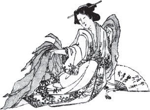 Наступил праздник Бон[22], пришло тринадцатое число. Вечером, закончив все приготовления, Синдзабуро расстелил на веранде циновку, возжег ароматические палочки, надел белое кимоно и, обмахиваясь веером от комаров, устремил грустный взгляд на ясную полную луну. Вдруг он услыхал за оградой стук гэта. Он оглянулся и увидел двух женщин. Впереди шла представительная женщина лет тридцати, в прическе марумагэ. Она несла фонарь с модным в те времена шелковым колпаком в виде пиона. Следом шла молоденькая девушка в высокой прическе симада. На ней было кимоно цвета осенней травы с узорами на подоле и рукавах, под которым виднелось нижнее кимоно алого шелка, затянутое атласным оби. В руке у нее был веер с лакированной ручкой. Женщины вышли на лунный свет. Синдзабуро всмотрелся. Что такое? Да ведь это же О-Цую, дочь Иидзимы! Он поднялся и вытянул шею, чтобы лучше рассмотреть девушку. Увидев его, женщины остановились, и та, что была впереди, воскликнула: