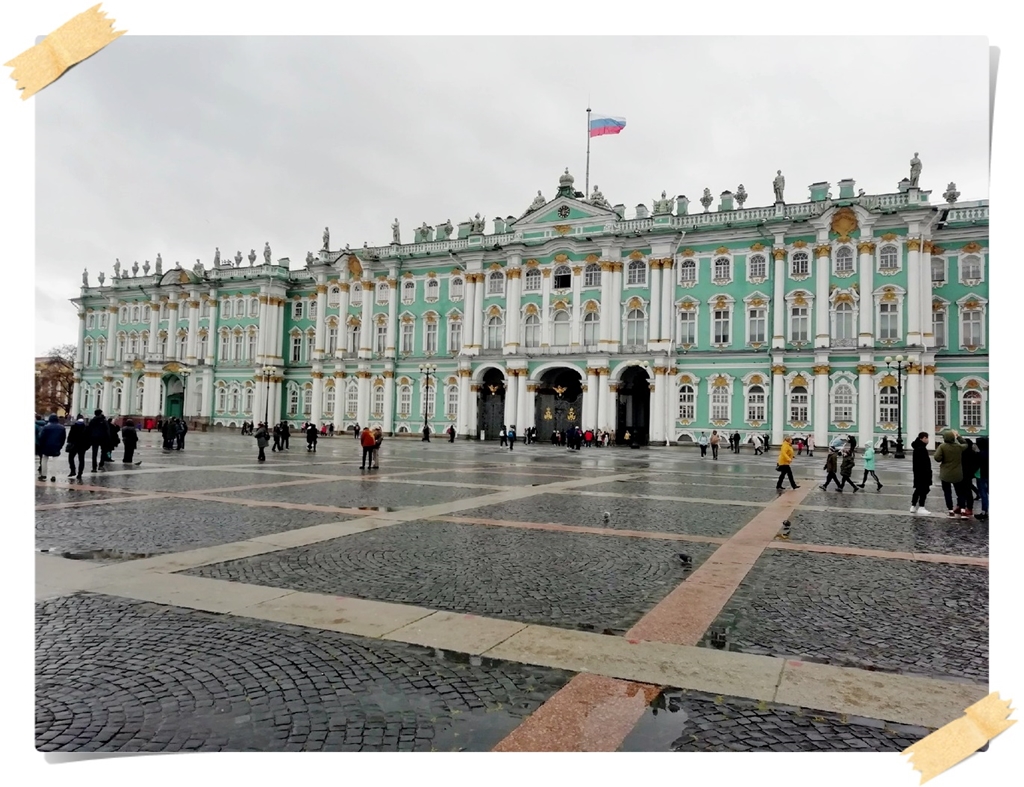 Дворцовая площадь – это архитектурный ансамбль, возникший во второй половине XVIII – начале XIX века. Согласна данными википедии, площадь образуют памятники истории и культуры федерального значения: Зимний дворец, Здание штаба Гвардейского корпуса, Здание Главного штаба с Триумфальной аркой и Александровская колонна (я привыкла называть её столпом, думаю, как и многие жители города, а причина скорее всего кроется в стихотворении А.С. Пушкина «Памятник»).