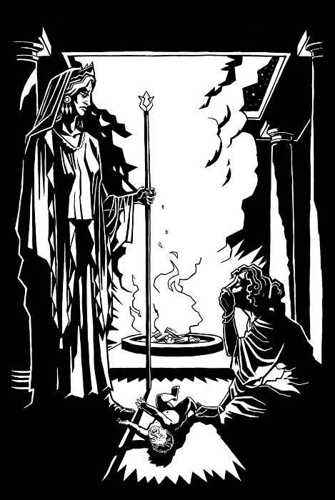 Переступая порог зала, где собралась женская половина царского дома, Деметра коснулась головой притолоки – и все помещение озарилось божественным светом. Ахнув от изумления, Метанира застыла в благоговейном страхе, а потом вскочила, уступая гостье свое кресло.