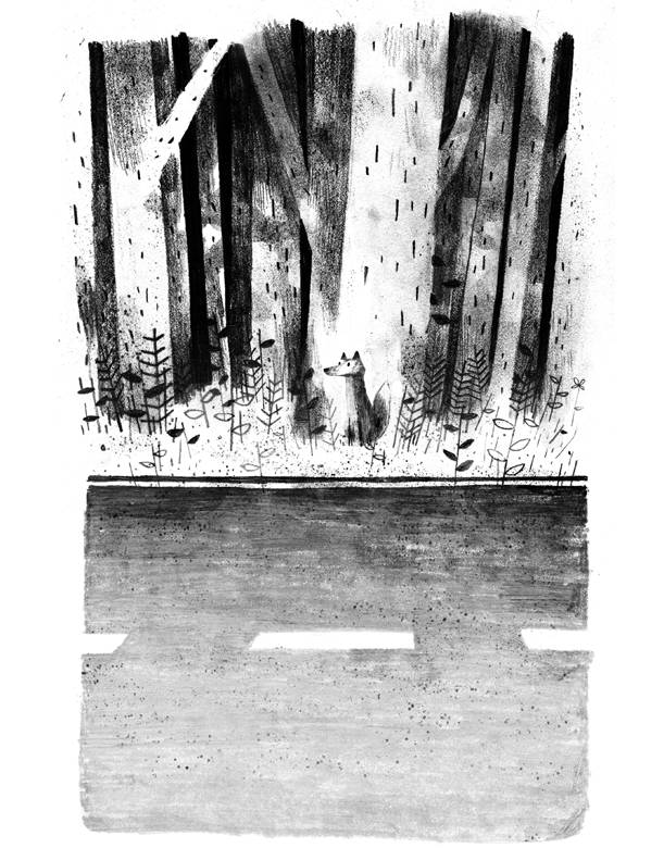 Лис догадался, что автомобиль замедляет ход, раньше мальчика, он всегда чуял всё раньше. Подушечками лап, вибриссами, позвонками. А когда дрожание и гул изменились, лис понял, что дорога стала неровная. Он вытянулся на коленях у мальчика, ловя струйки запахов из окна. Струйки говорили, что снаружи лес. Резкие ароматы сосновой древесины, коры, шишек и хвои будто иглами пронзали воздух, между ними вились более мягкие нити клевера, дикого чеснока, папоротников и ещё сто других запахов, которые были лису незнакомы, но все они были зелёные и настойчивые.