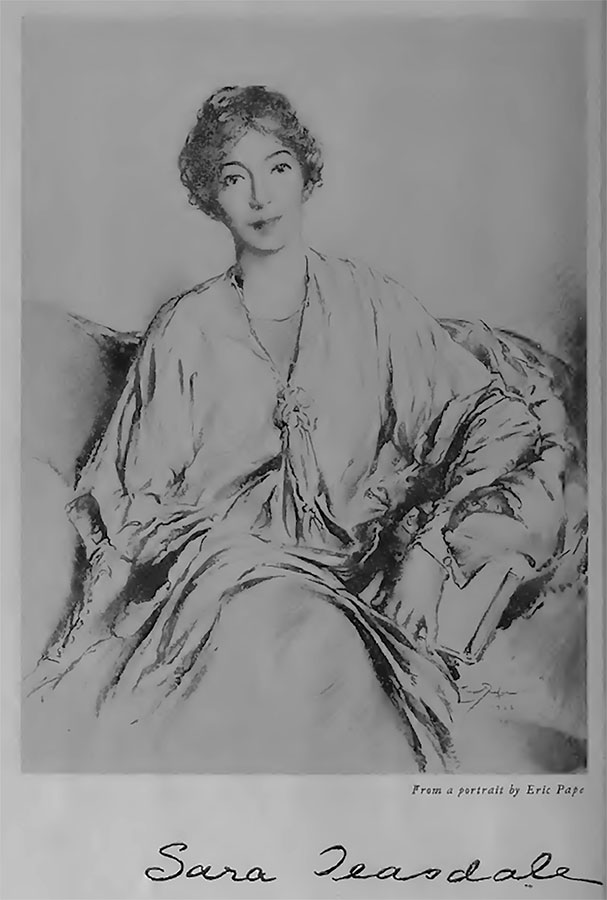 Если вы откроете американское солидное издание «Сокровища любимых стихотворений» – солидный том в 680 страниц, то там в списке самых тзвестных поэтов Великобритании и США последних четырех столетий, начиная от Кристофера Марло и Уильяма Шекспира и, заканчивая Уильямом Батлером Йетсом и Томасом Элиотом, вы найдете и имя Сары Тревол Тисдейл (Sarah Trevor Teasdale).