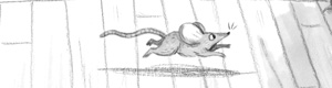 Посередине комедийной сцены, когда весь зал хохотал так, что звенели стекляшки в люстрах, Максимилиан вдруг заметил маленький розовый носик и усики, которые появились под краем занавеса на сцене. Кот почувствовал, как вздрогнули его собственные усы, и он в мгновение ока запрыгнул на ступеньки, ведущие к сцене. Мышь пискнула и кинулась наутёк. В этот момент на сцене актёр растянулся во весь рост, и публика покатилась со смеху. Никто не заметил белого кота, проскользнувшего за декорации.