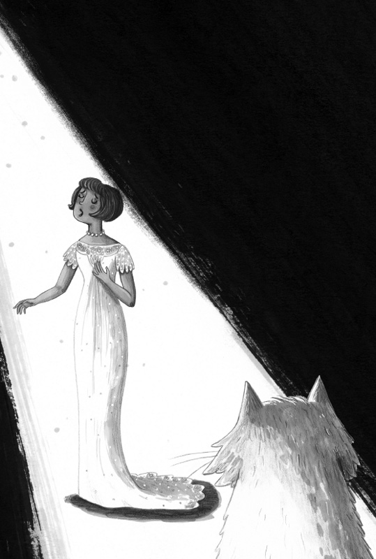 Максимилиан никогда в жизни не видел таких красивых нарядов. Он вообще-то привык любоваться красивыми вещами. Графиня Арлингтон очень любила свои платья, особенно вечерние, которые она называла «на выход». Коту никогда не позволялось сидеть у неё на коленях, чтобы он не помял подол или не оставил шерсть на корсаже. Для графини её наряды были второй самой дорогой вещью в жизни после её драгоценностей. Каждый год она полностью обновляла свой гардероб, который ей доставляли прямо из Парижа. Но как бы ни были красивы её наряды, они не могли сравниться с этими, театральными. Здесь висели чудесные бархатные платья с рукавами до самой земли, и юбки, полностью сделанные из бусин, которые переливались на свету, и наряды со шлейфом, три или четыре раза обёрнутым вокруг юбки, чтобы не касаться пола. Одно платье было надето на манекен посередине комнаты. Казалось, что оно сделано из стекла – так оно всё сверкало. Подойдя поближе, Максимилиан увидел в нём свое отражение. Оказывается, платье состояло из крохотных зеркал, в которых тысяча котов гонялись за тысячей солнечных зайчиков.