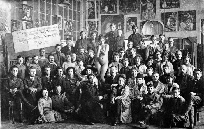 Илья Машков со своими учениками во II ГСХМ. Москва. 1919