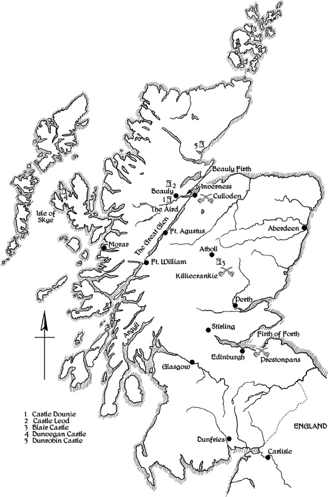 In Simon’s heyday as Lord Lovat his clan territories extended over 500 square miles of northern Scotland. ‘My country’, as Lovat called it, was bigger than King George II’s Hanoverian homeland. Fraser territories fell into two distinct regions: poor Highland and rich Lowland. The estates reaching over to the west coast and heading south-west from Inverness down Loch Ness, were typically Highland: peaty soil covered in rough grass; rushes and heather rising from wind-whipped moors to stony peaks of over 3,000 feet. Between them sheltered valley floors of startling greenness.