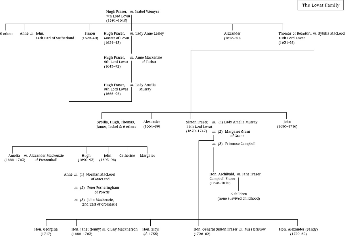 Now almost deserted, in Lovat’s lifetime hundreds of families inhabited these remote fertile glens: the kindred, or ‘family’, of up to 10,000 that was Clan Fraser. Many passed their lives without venturing even once to the regional capital, Inverness – though the young men would pour out of the hills to fight if the chief summoned them with the fiery cross. Visitors from the Lowlands or England in the early eighteenth century regarded the Highlands with appalled distaste. ‘The huge naked rocks, being just above the heath, resemble nothing so much as a scabbed head,’ shuddered an English army officer. The ‘dirty purple’ heather sickened him. Yet the 11th Lord Lovat’s wild hill country produced his most loyal and ferocious fighting clansmen and their lairds, and Lovat returned their devotion with a passion.