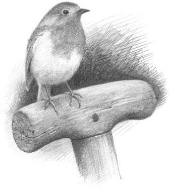The hedges shiver with excited twittering as I sprinkle the crusts on the lawn and as soon as I step back the sparrows get busy with the crumbs. I turn the earth with the garden fork that Grandad always leaves there. The robin comes and perches on the fork handle and watches the soil for the wriggle of a worm or centipede. Grandad once said that an ounce of brown and red feathers didn’t seem like much, but it’s the robin’s nature to be fierce like a tiger when it protects its territory. He likes the robin most of all.